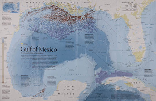 Best of Show (print): National Geographic, for “Gulf of Mexico: A Geography of Offshore Oil,” the story of oil drilling and drilling rights, primarily along the coast of Louisiana.