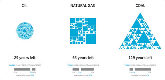 How would you respond to Stacey’s questions? Are these visualizations of natural gas and other sources of energy easy to interpret? Do they do a good job of telling the story of depleting resources? Do they suggest that GE or David McCandless actually care about this information? Do GE or McCandless respect our intelligence?